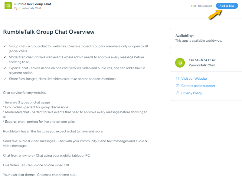 Wix site owners can use the chat app available in the Wix App Market. It’s an easy way to add real-time community chat with moderation features included, keeping discussions safe without extra work.