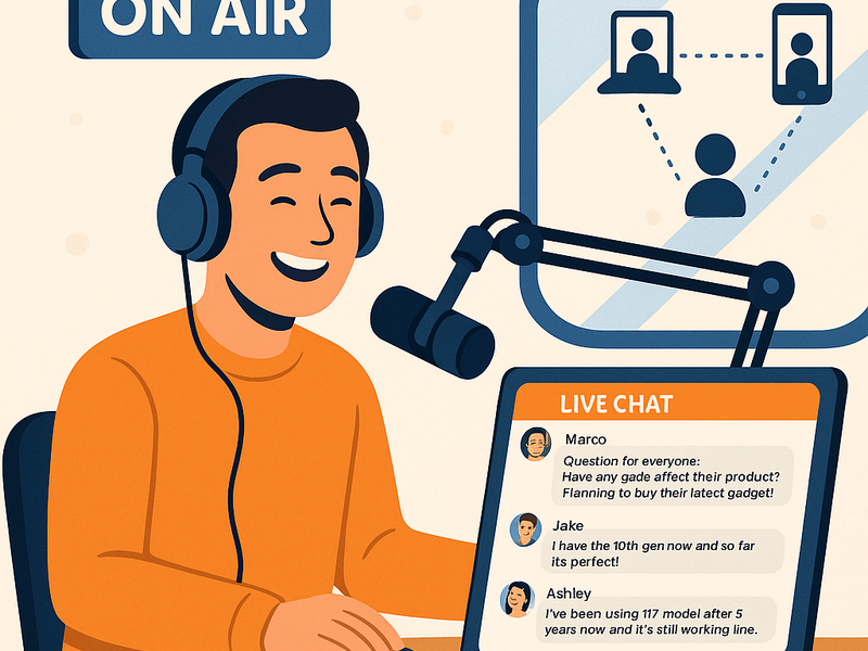 - Assign a dedicated moderator — Your host is talking; your producer should be watching the chat and surfacing the best messages.