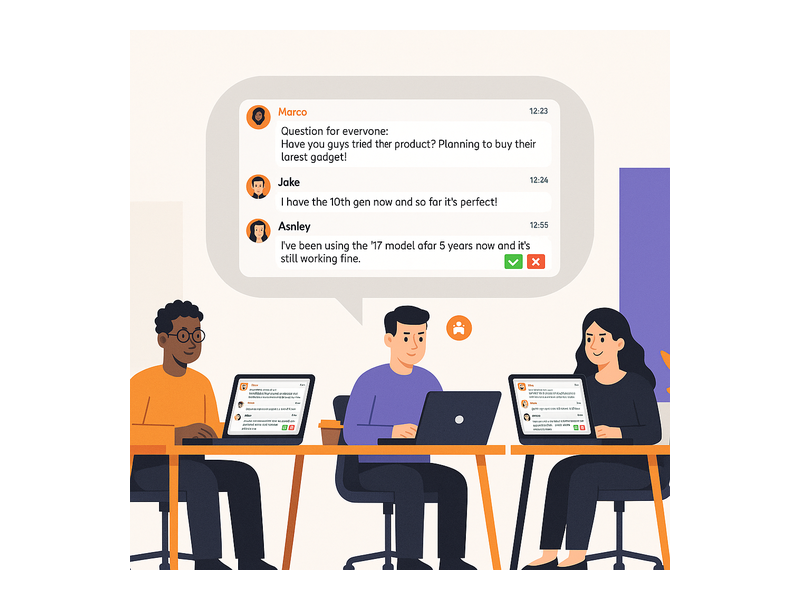 - Lower support volume — peer-to-peer team chat reduces inbound support load by enabling users and team members to help each other in real time