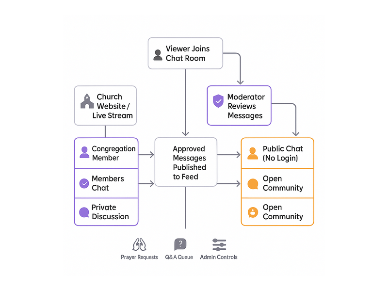 RumbleTalk is purpose-built for high-volume live scenarios. Features like the message rate limiter, Admin Mode broadcast lock, and Moderated Q&A queue ensure that even audiences of thousands can have structured, meaningful exchanges without devolving into noise.